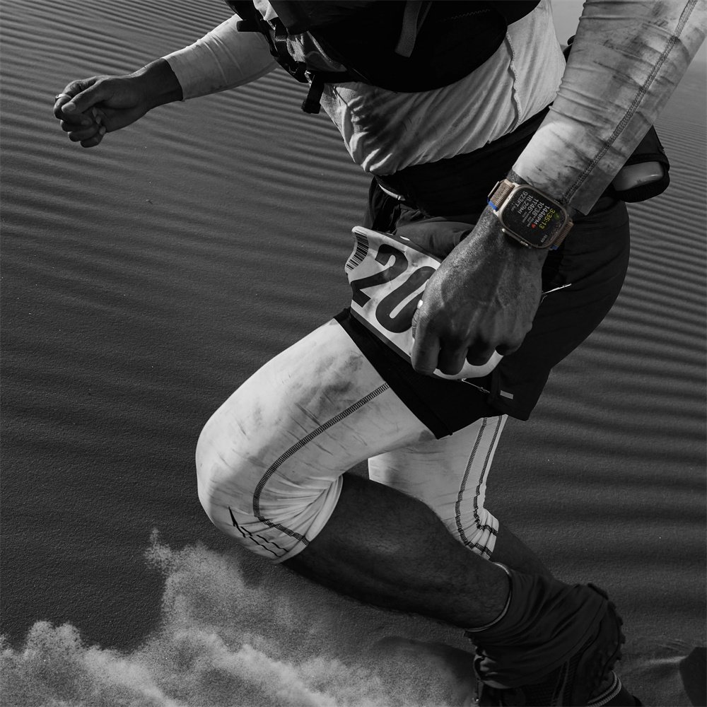 OverviewMeet the most rugged and capable Apple Watch ever. With a robust titanium case, precision dual-frequency GPS, up to 36 hours of battery life the freedom of cellular and three specialized bands made for athletes and adventurers of all kinds. The biggest and brightest Apple Watch display ever. Direct sunlight is no obstacle for an Always‑On Retina display that’s an eye-opening 2000 nits at its peak and twice as bright as any other Apple Watch. And the bigger display provides more room for workout metrics and detail‑packed watch faces. Wayfinder watch face with Night Mode. Specifically for Apple Watch Ultra, the Wayfinder face features a time dial that can be switched to a live compass and has room for eight complications. In low light situations, you can rotate the Digital Crown to activate Night Mode and see the watch face turn a vivid red. Looks tough. Because it is. To build the ultimate sports watch, we crafted every element with painstaking attention to detail for unparalleled performance. Titanium strikes the perfect balance between weight, ruggedness, and corrosion resistance. The new case design rises up to surround the flat sapphire crystal and protect it from edge impacts. The Digital Crown is larger and the side button is raised from the case, making them easier to use while you’re wearing gloves. Ready for Action. The new Action button gives you quick, physical control over a variety of functions. It’s customizable and can do things like control a workout, mark a Compass Waypoint, or begin a dive. Just like you, it’s full of potential. Everything in its place. An essential and versatile tool that fits on your wrist, Apple Watch Ultra packs incredible capability into a surprisingly small space. Battery life for days. When you’re on the second day of a backpacking trip, the final leg of a triathlon, or diving along a coral reef, the last thing you want to think about is running out of battery. With longer battery life than ever, you can take on almost anything and have energy to spare. Hike, run, dive. There’s a band for that. Making the ultimate sports watch for athletes of all kinds required a unique approach. That’s why specialized bands for outdoor adventures, endurance training, and water sports are as meticulously crafted as the watch itself. Whether it’s your first run in a while, a 10K, or an ultramarathon, it takes a special kind of person to seek out challenges that test you physically. Apple Watch Ultra is the training partner to help you push your limits. Find strength in numbers. Making progress as an athlete requires accurate data and insights. Updates to the Workout app like new metrics and views give you all the information you need to be and beat your best. The larger display lets you see up to six metrics at once. GPS that’s truly trailblazing. GPS performance is critical for athletes who want the most precise metrics, whether they’re training in urban streets or out in the wild. Apple Watch Ultra features a new precision dual-frequency GPS system that provides amazing accuracy in the most difficult locations. Two frequencies. One precise solution. Apple Watch Ultra integrates both L1 and L5 GPS into a new antenna design for greater range with incredible power efficiency. It combines data from these two frequencies to provide amazingly accurate distance, pace, and route calculations. Designed to take on extreme environments, elevations, and temperatures, Apple Watch Ultra is an essential exploration tool that can take you everywhere. And help get you home. The compass reimagined. An accurate compass is as crucial for navigating the wild as a solid pair of boots. The redesigned Compass app delivers all‑new views and functionality that take wrist‑driven orienteering to new heights. Action button. Make your mark. Find your way. A single press of the Action button can quickly drop a Compass Waypoint at your location or immediately start Backtrack, so you can focus on the journey ahead or behind you.